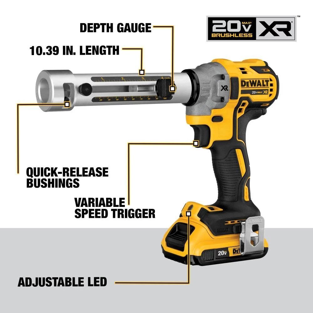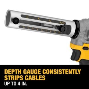 The DCE151TD1 20V MAX XR Cordless Cable Stripper is a dedicated, powered tool for consistently stripping THHN and XHHW cable up to 4-inch without the need of a knife. Using the appropriate bushing, the cordless Cable Stripper works on both copper and aluminum cable, covering a range in size from 6-AWG to 750MCM CU and 900MCM AL. To help determine which bushing is right for the job, DEWALT has a reference chart that is included in the manual as well as linked below. When selecting a bushing it is recommended that the bushing size above and below the recommended bushing also be selected as there can be variance in a specific brand of cable.